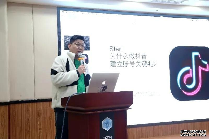 首先,邵总利用精美的课件为大家介绍了抖音短视频的发展现状及运营机制,对抖音短视频的类型进行了细致的讲解区分,并将初学小白如何设置昵称、头图、头像的原则进行了举例说明。邵总告知同学们可以从自己的专业入手,更容易拍出吸引人、有共鸣、实用的作品。
