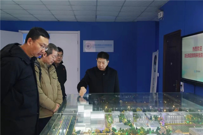 王延龙副书记一行首先到中德职业合作项目展览馆参观,崔欣院长介绍我院新校区和实训基地的建筑规划和运营模式。