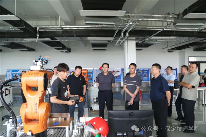 徐主任一行首先到中德(保定)工业4.0智能制造公共实训基地参观,实地观摩了数控加工、工业机器人等现代化实训设备。